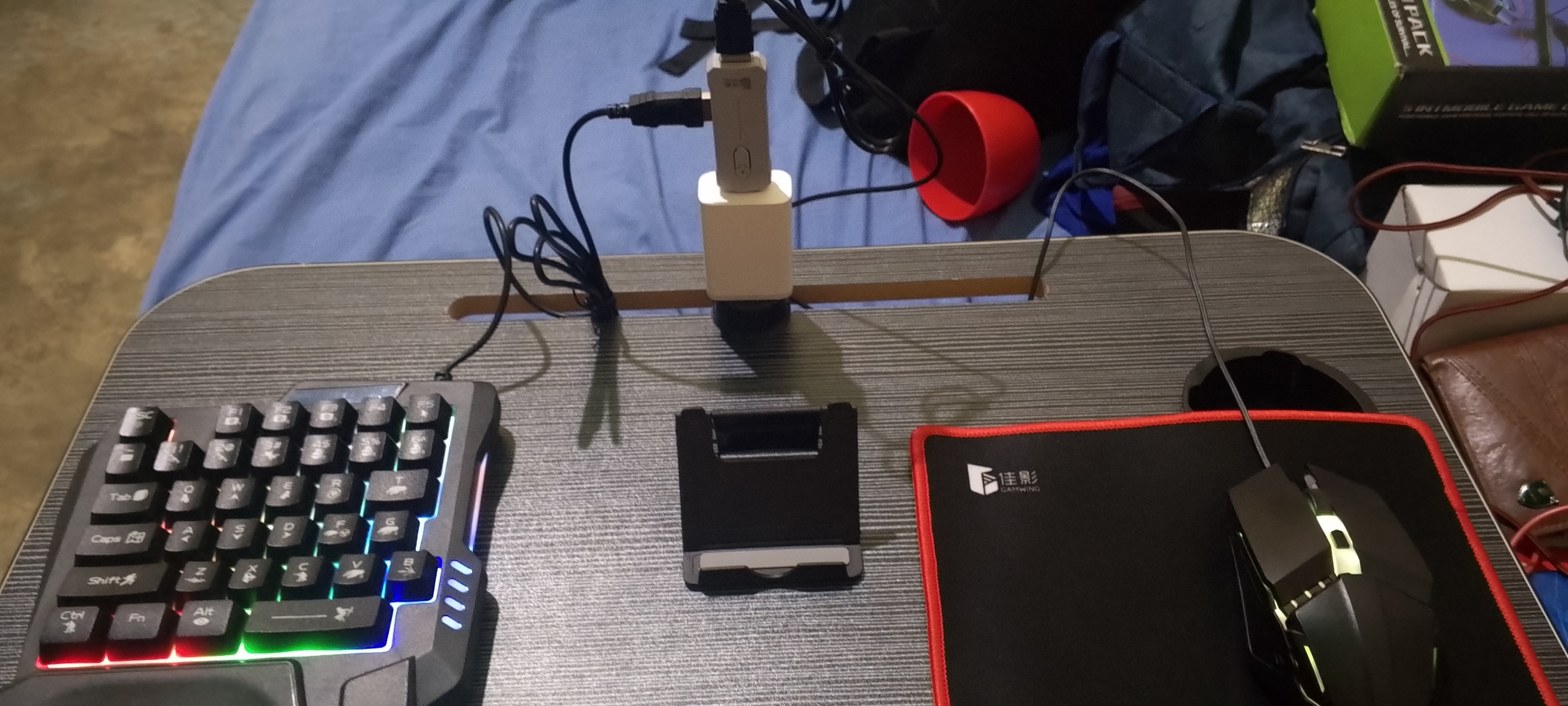 I'm Venezuelan and I bought the "5-in-1 Mobile Gaming Combo Pack." I downloaded the GeekGamer app to map the mouse and keyboard, but during the firmware update, I accidentally disconnected the "X8 Mouse and Keyboard Converter." Since then, it won't connect via Bluetooth. The LED light isn't blinking or even turning on, but it appears on my phone as "X8 a_OTA_".